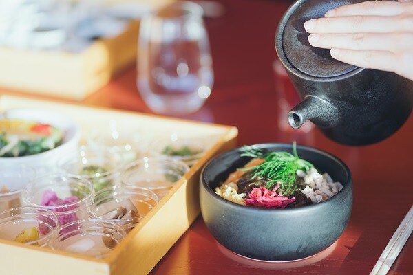 最後は、やんばる若鶏と鰹の出汁をかけてお茶漬けのようにし、地元の風情を感じながら、身体と心を温める。