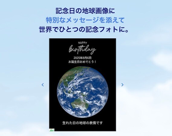 誕生日や結婚記念日、出産の日、卒業や入学の日。 人生には、あとから振り返るたび、意味を持つ日がある。 写真は残っていても、その日の空の表情まで覚えている人は、そう多くはない。 「宙(そら)からの贈りものアニバーサリー・フォト」は、その一日を、宇宙から見た地球の姿とともに残す記念フォトサービスだ。