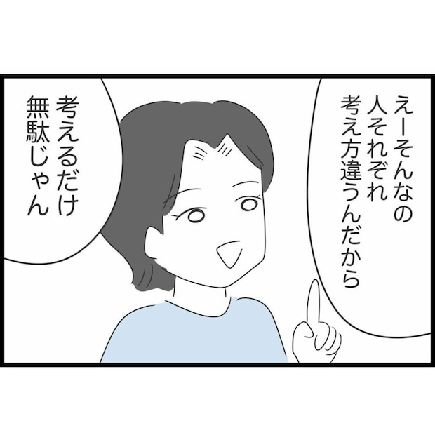 この一言ですみれさんたちはゆっきーとの価値観の違いは埋まらないと確信。彼女との交友関係を断つことにしました。お付き合いでイライラをため込むよりは、こうして距離を取る判断も大切かもしれません。