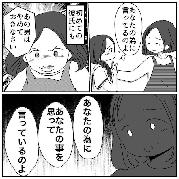 娘の話を聞かず、勝手な思い込みで「母親失格」「我が家の恥」「ノイローゼ」など、きつい言葉をフォロワーさんに浴びせる実母。実はフォロワーさんが子どものときから、考えや意見を聞き入れてくれない人でした。
