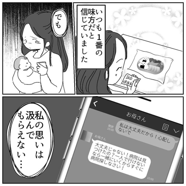 そのせいでなりたいこと、したいことができなかったものの、母は一番の味方だと信じていたのです。しかし大人になった今でも実母は思いを汲んでくれません。その母の様子にフォロワーさんは追い詰められ、産後の疲れもありノイローゼ気味になってしまいます。