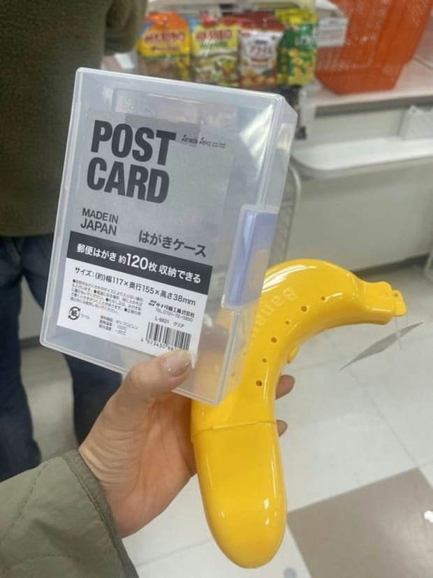 100円ショップで売っているハガキケースが、お菓子やおにぎりの持ち歩きにぴったりだそう。硬いケースですから中身が潰れる心配もなく、大きすぎず邪魔にならない絶妙なサイズ感。しっかりロックができるという点も、かばんに入れる上で安心できるポイントですね。