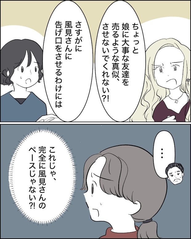 それを見ていた風見さんのお母さんが、「ちょっと、娘に大事な友達を売るような真似、させないでくれない!?」と怒り出し、「さすがに風見さんに告げ口をさせるわけには」と水原先生までが言い出す始末。