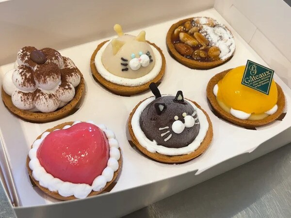 タルトは、白猫・黒猫をモチーフにしたもので、4個セット・6個セットから選択可能。タルトセットの中には、人気満足度の高いモンブランやチョコなど、見た目も味わいも華やかなラインナップが用意されている。