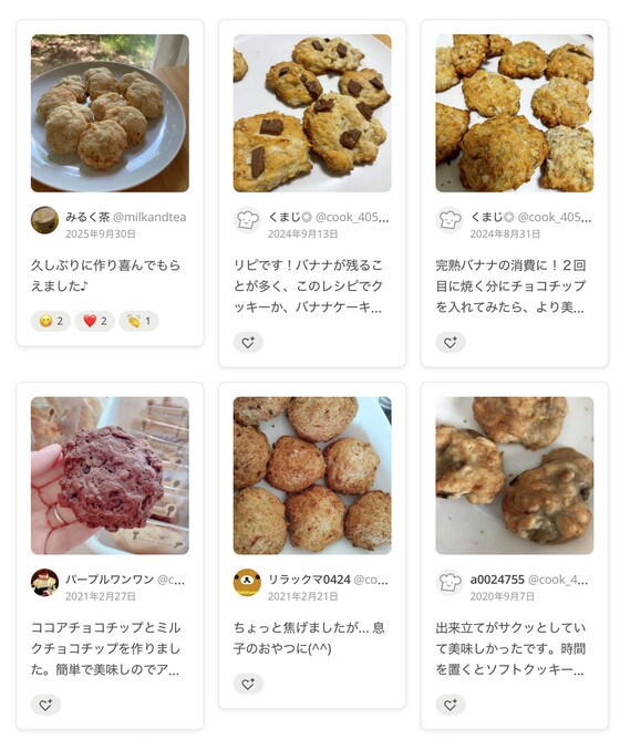 実際にこのレシピで作った人の感想つくれぽ(つくりましたフォトレポートのこと)にも「バナナクッキー、初めて作りました!好評でした」「バナナ消費においしくいただきました」「子供のおやつに。喜んでくれました」など、250件以上もの嬉しい声が届いています。