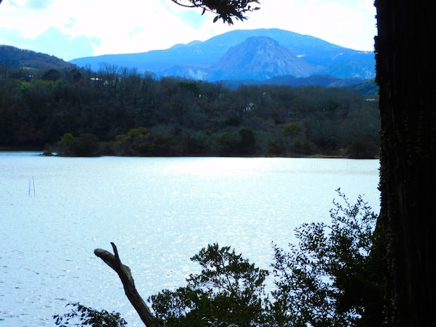 約10万年前の噴火でできた火口湖で、天気の良い日には周りの山々や空模様が湖面に鏡のように映ることから「伊豆の瞳」とも呼ばれている景勝地です。