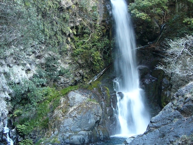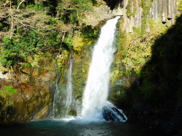 釜滝、エビ滝、蛇滝、初景滝、カニ滝、出合滝、大滝の7つの滝が連なる景勝地です。7つの滝は全長約850mの遊歩道で結ばれており、片道1時間ほど全ての滝を巡る事ができます。