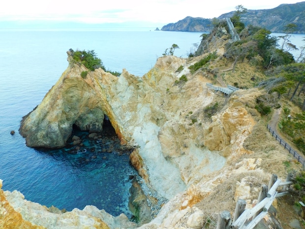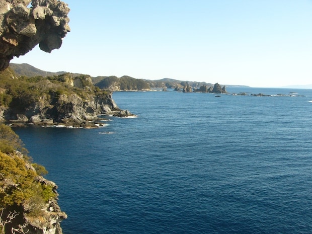 伊豆半島最南端の岬です。海底火山の影響により形成された切り立った断崖や奇岩が続いており、岬の先端には灯台が建っています。