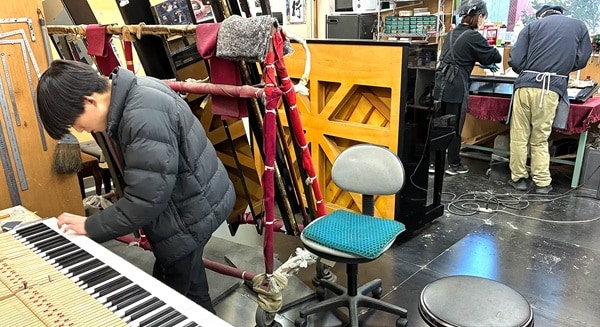 なお、再調整ピアノは、ユーザーから買取・引取・下取をした中古ピアノを、使える部品は活かしながらも、日常の練習に耐えうるクオリティとしてクリーニング&修理&整備(調律・整調・整音)を行い、リーズナブルかつ安心して利用できるようにしたピアノだ。