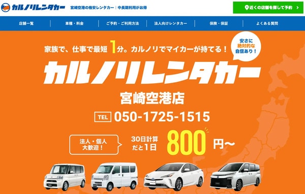 長期利用できる「カルノリレンタカー宮崎空港店」