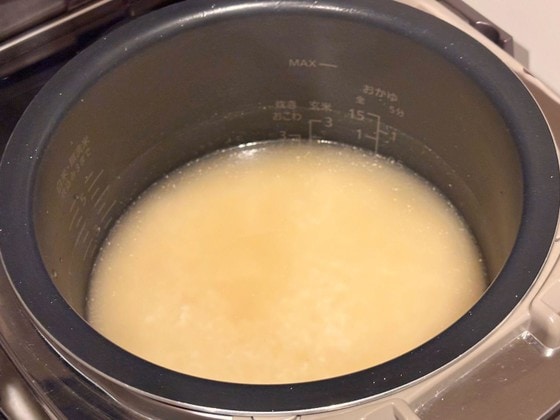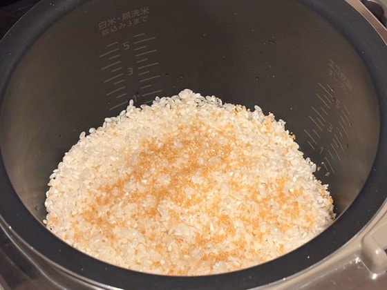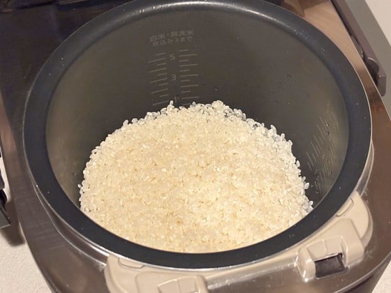 1. 米を研いで炊飯器に入れます。今回は精米2合で作ってみました。