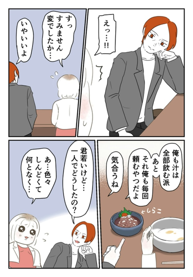 初めての彼・モトさんと結婚の約束をし、何もうたがわず幸せをかみしめていた尾持さん。ところが、あることから、彼が妻子持ちであることが発覚します…。そんなモトさんとの出会いは、ふらっと一人で立ち寄った居酒屋でした。