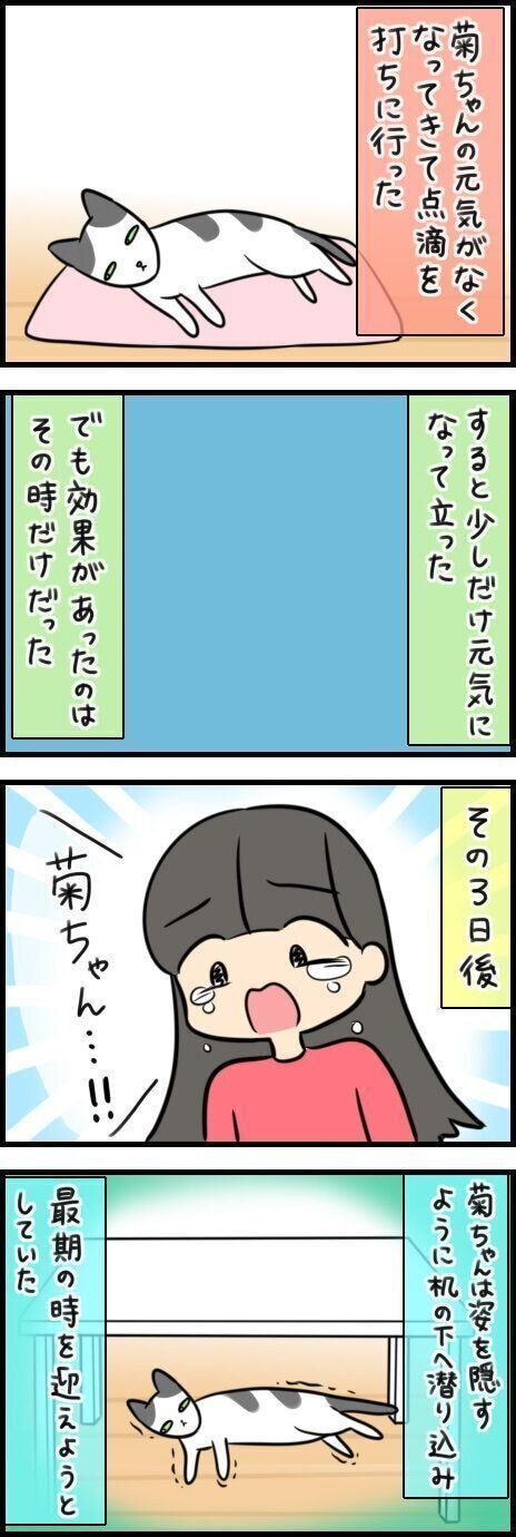 そう、実は漫画では描きませんでしたが家族全員が菊ちゃんの最期を看取ることが出来ました。