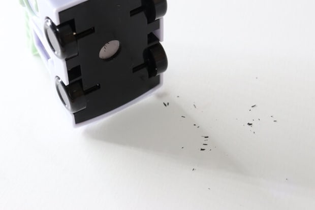 ティッシュの上で作業し、使用後は鉛筆の粉をよく落とさないと机が汚れてしまいます。
