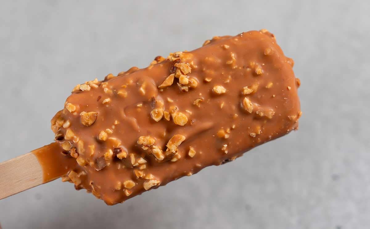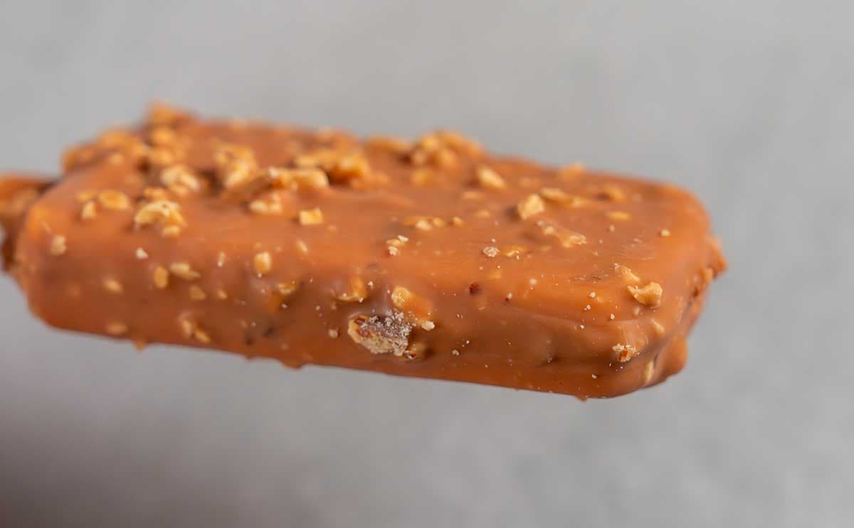 アイスの表面のキャラメルチョココーティングには、ナッツがふんだんに使われています。贅沢!