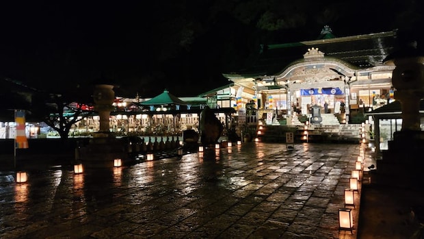 108人の方には、「除夜の鐘の証」を謹呈。参道はたくさんの行燈、ローソクが点灯し幽玄な雰囲気の境内です。