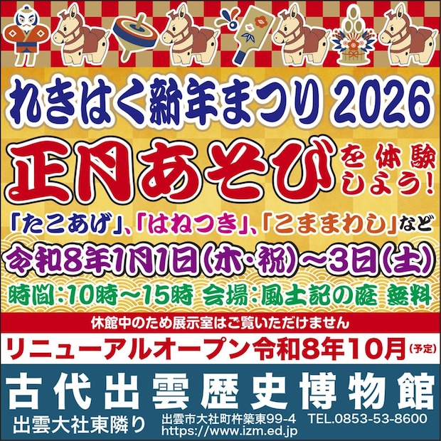 古代出雲歴史博物館では、正月三が日、恒例のれきはく新年まつりを開催します!