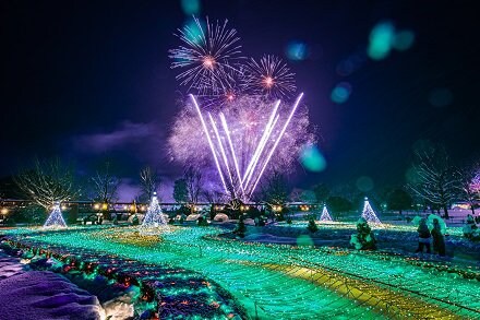 日本最大級のフラワーパークを舞台に100万級の光がきらめくイルミネーションに合わせて、今年も冬の花火が空を彩ります!