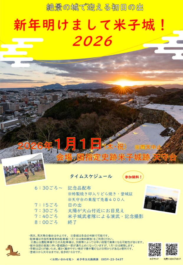 一年の計は元旦にあり。新年のスタートをぜひ、地域の豊かな歴史文化と自然を実感できる米子城で過ごしましょう!