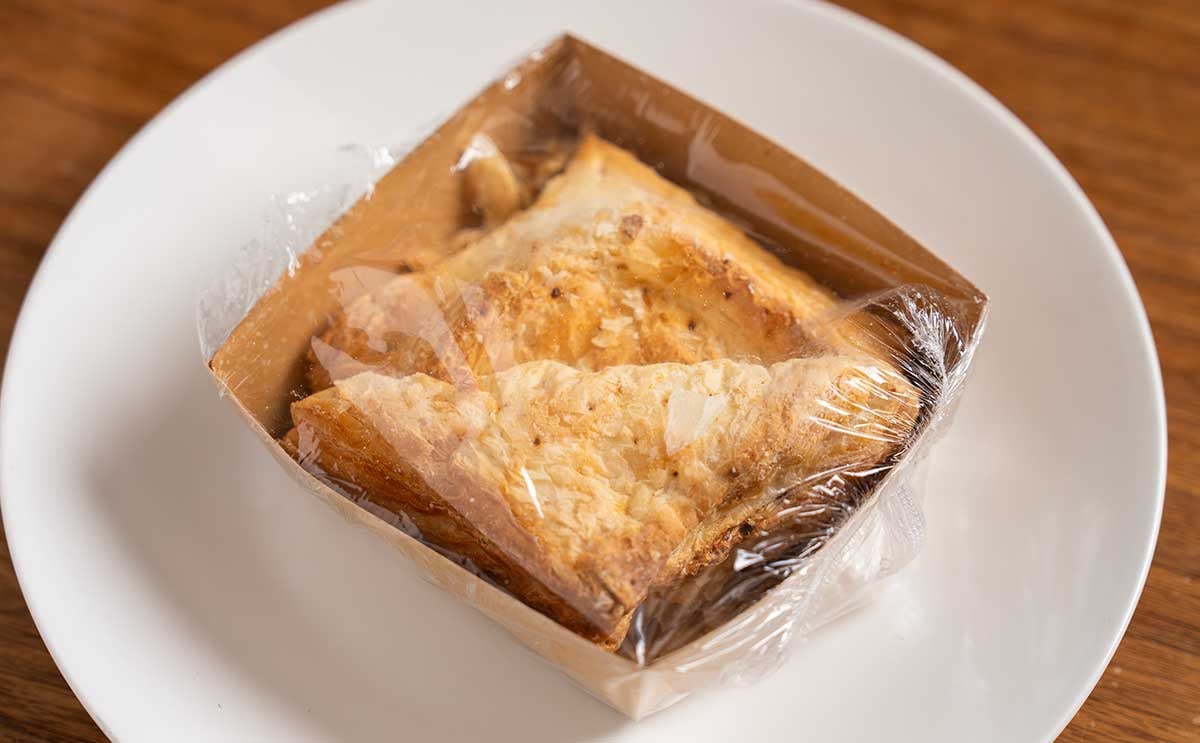 オーブントースターで温めた直後のパイ生地は、柔らかかったのですが、少し時間をおいたらパリパリになり、サクッと軽やかな食感を楽しめます。
