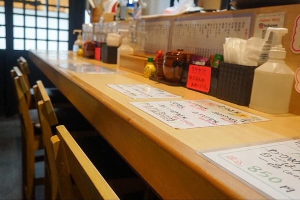 カウンター8席だけの小さな店内。壁にはお孫さんの絵や写真。家の延長みたいなあたたかさが、ふとした瞬間に心をほどく。