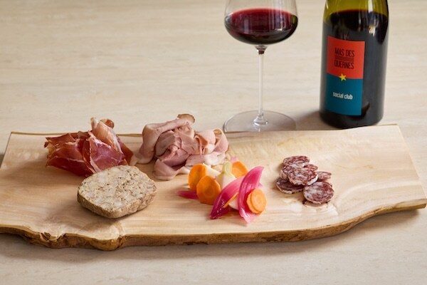 料理の一例として、「カットプレート(熟成ハム、サラミ、自家製パテ、自家製ピクルス etc)」は一人1,200円、