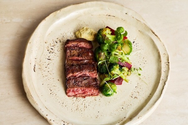 「三良坂牛のバベット季節野菜のロースト ベアルネーズソースを添えて」は4,000円〜で提供される。