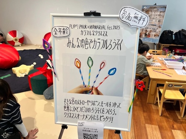 今回の【MAMARIAL fes. 2025】とのコラボレーションでは、「カラフルなクリスマス」をテーマに、親子で楽しめるオリジナル遊具とワークショップが開催されていました!
