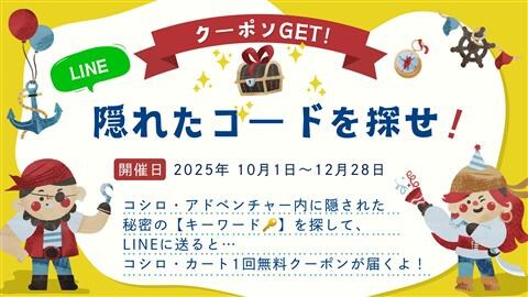 園内に隠されたキーワードを探して公式LINEに送信すると「コシロ・カート無料券」がもらえる!