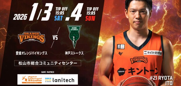 愛媛オレンジバイキングスが神戸ストークスを迎え撃ちます。