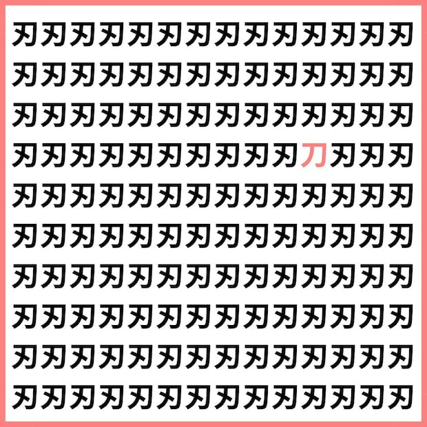 たくさんの「刃」の中に、1文字だけ違う漢字が混ざっています。