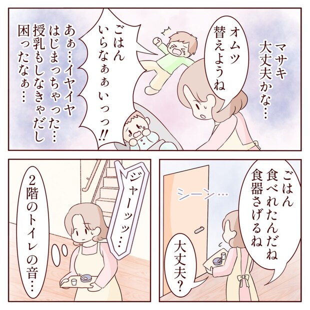当時、2歳と0歳の息子たちは当然手がかかります。マサキを心配しながらも、オムツ交換や、授乳、そして上の子のイヤイヤ期に構っていたのでマサキの寝ている部屋に何度も行くことができませんでした。それでも食器をさげに行くと、ドアの前に完食して置いてあったので「ご飯食べれたんだね、大丈夫?」と声をかけましたが返事はありませんでした。それでも2階のトイレを使う音が聞こえていたので動けてはいるな、とは確認していました。