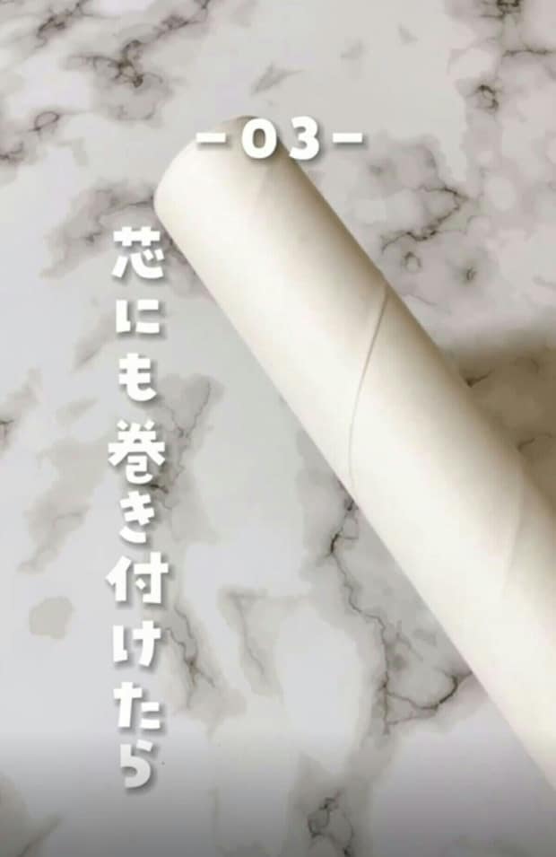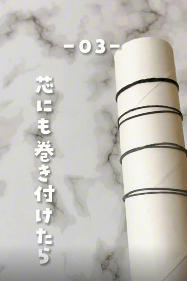 そのラップの芯に、輪ゴムを数本巻き付けます。