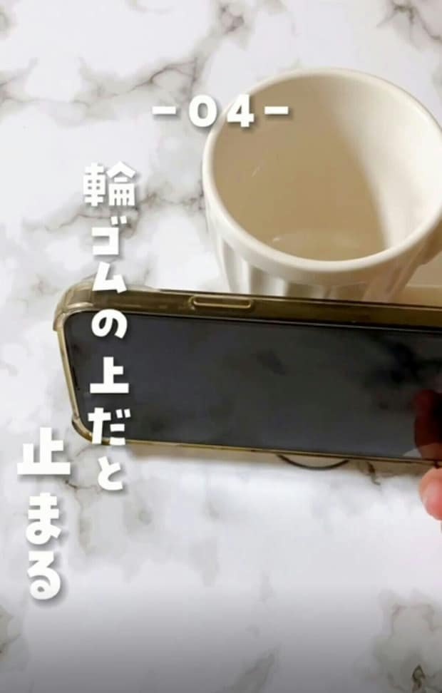 そんなときは、スマートフォンの下に輪ゴムを置いておくことで滑り止めの効果があり、安定して立て掛けることができます。メイク直しのときに鏡を立てかけたいときにも使えそうですね。
