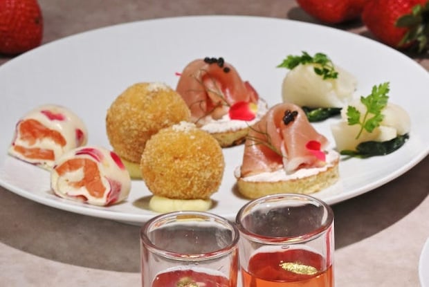 スタンド3段目では、「スモークサーモンとクリームチーズのフラワーロール」や「近江牛とポテトのクロケット」、「カブのポタージュ」など全5種類を用意。ぬくもり感じるセイボリーは、寒さ深まる季節にぴったり。