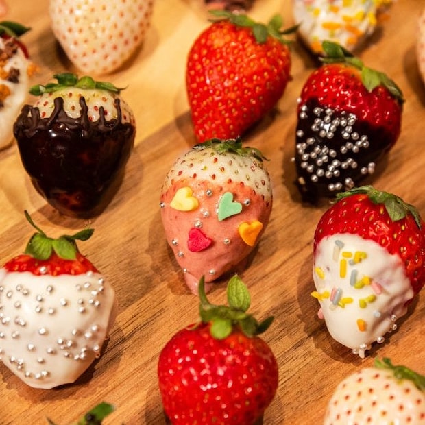注目したいのは、味変しながら“無限いちご”を楽しめる7種類のソース&トッピング。定番の練乳に加え、チョコレートソース、いちごチョコレートソース、ホワイトチョコレートソース、さらにアラザンやハートカラースプレー、チョコクランブルなど、SNS映えするデコレーションがたっぷりと用意される。自分だけのオリジナルいちごスイーツを作る、遊び心あふれるひとときを体験してみて。