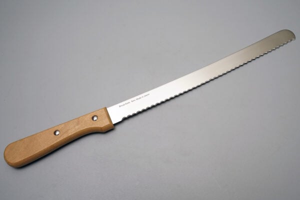 今回紹介する「パンナイフ」を含め、木製ハンドルの三徳包丁やペティナイフ、さらに樹脂製ハンドルのモデルなど、筆者の知る限り計6種類がラインアップされています。