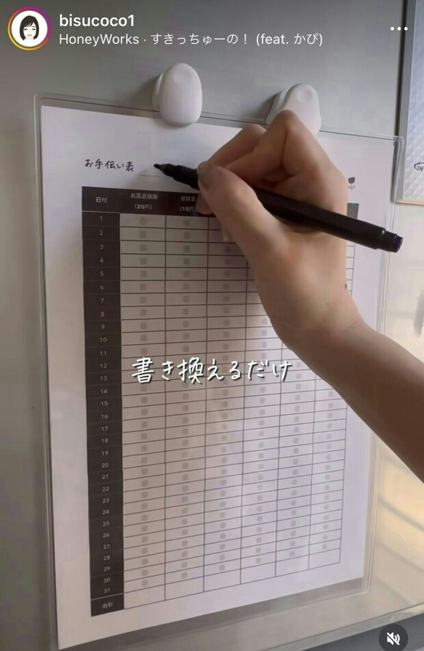 普段から自作のお手伝い表を使用している方にも、または検討中のご家庭にも、ぜひお試しいただきたい、1児のママ・びす子⌇小学生ママの暮らしを豊かにさんの手作りのお手伝い表。