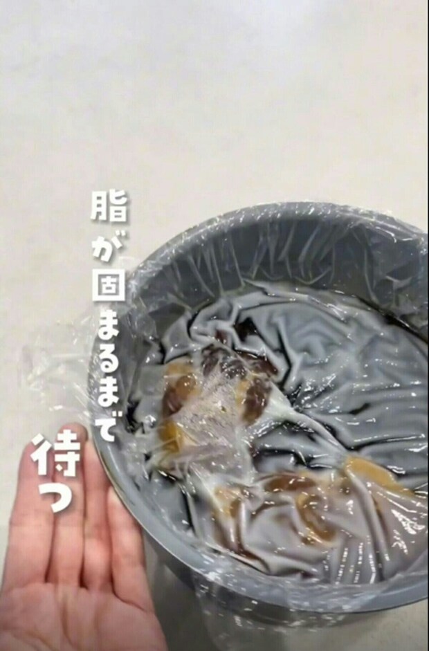 そして、脂が冷えて固まるのを待ちます。