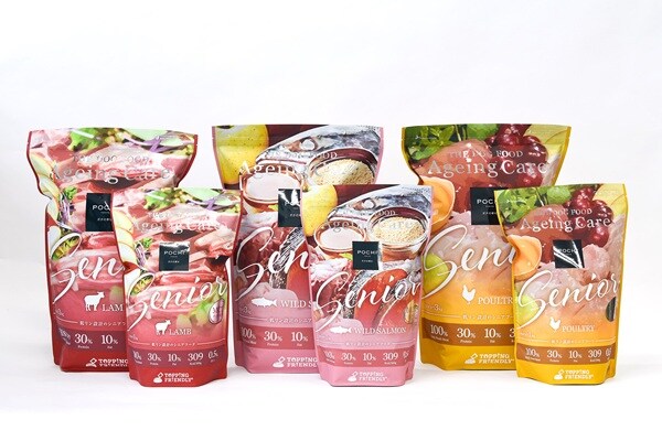 犬の個性に合わせて毎日のトッピングを楽しめる総合栄養食「POCHI ザ・ドッグフード」シリーズの発売を皮切りに、2020年に3歳から始めるシニアフード「POCHI ザ・ドッグフード エイジングケア(現エイジングケアシニア)」シリーズを発売。