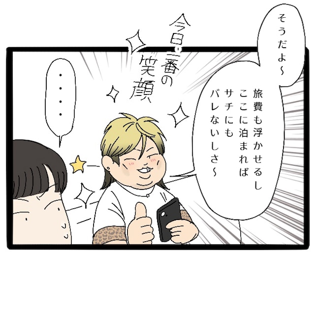 「そうだよ~。旅費も浮かせるし、ここに泊まればサチにもバレないしさ~」と完ぺきな計画だと言わんばかりの今日一番の笑顔を見せる信也君。達也は呆れて何も言えないようです。