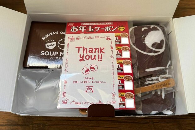 2025年12月26日(金)午前10時より発売となった、すき家の2026年福袋「SMILE BOX 2026」買ってみました!