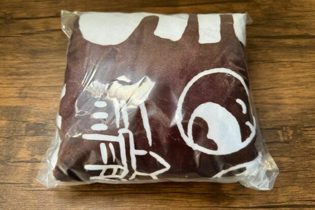 袋から取り出して広げてみました!濃いめのブラウンに白いイラストがお洒落です。