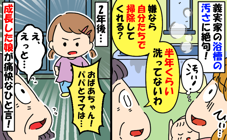 「家中の掃除をお願い」半年洗ってない義実家の風呂に絶句→2年後…私をこき使う義母に娘が痛快な一言