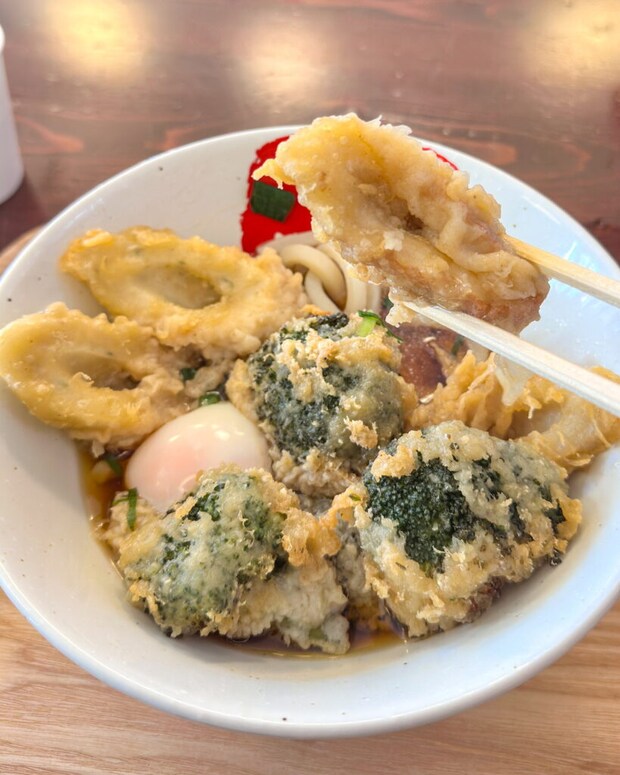 うどん(500円)+温泉たまご(150円)鳥取天ぷらセット(500円)