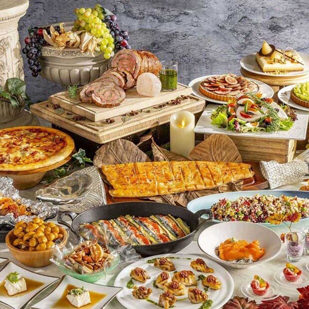 紅ズワイ蟹の食べ放題や、職人が目の前で握る本格寿司、カスタマイズできる海鮮丼など、豪華なラインナップに心躍る。揚げたて天ぷらや海老味噌ラーメン、北海道産かぼちゃのグラタンなど、温かい料理も充実。スイーツコーナーには、洋栗のモンブランやシャインマスカットのレアチーズムースが登場。