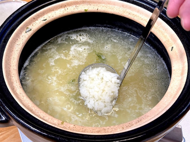 凝縮された旨味たっぷりのスープの中でご飯がふっくら…これ、最高のシメです。