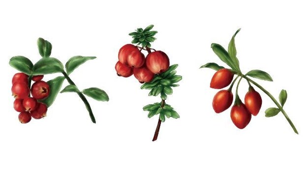 左から、リンゴンベリー、クランベリー、ゴジベリー