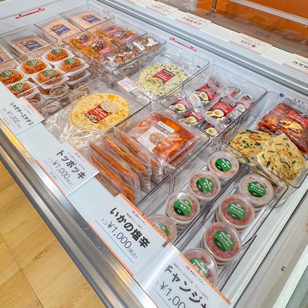 冷凍ブースには、たくさんの韓国料理がずらりと並んでいます。