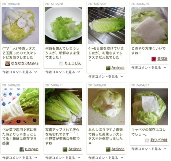 つくれぽ(作りましたフォトレポートのこと)にも、「購入したときよりシャキッとしました」「とっても簡単!」など、手軽にできる保存方法を絶賛する声がたくさん届いています。